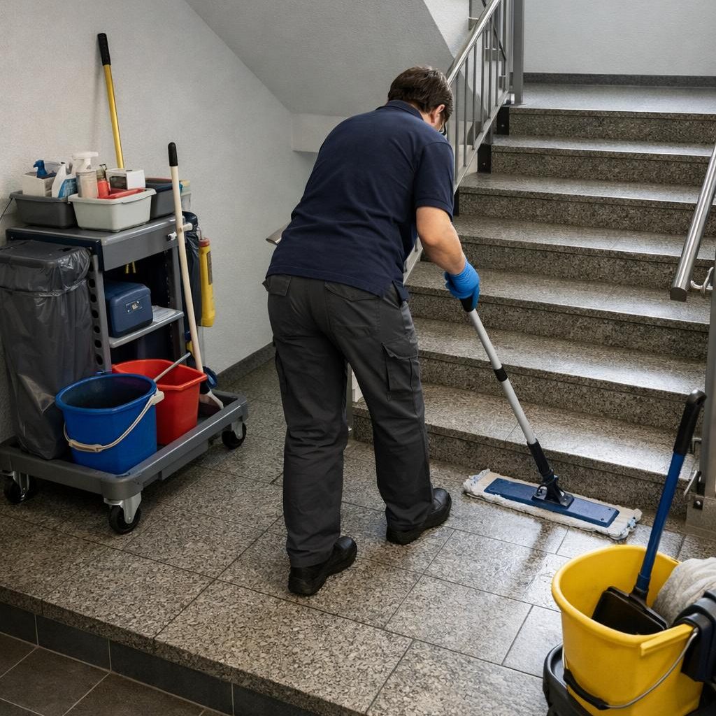 Regelmäßige oder einmalige Reinigung von Treppenhäusern und Gemeinschaftsflächen in Mehrfamilienhäusern.